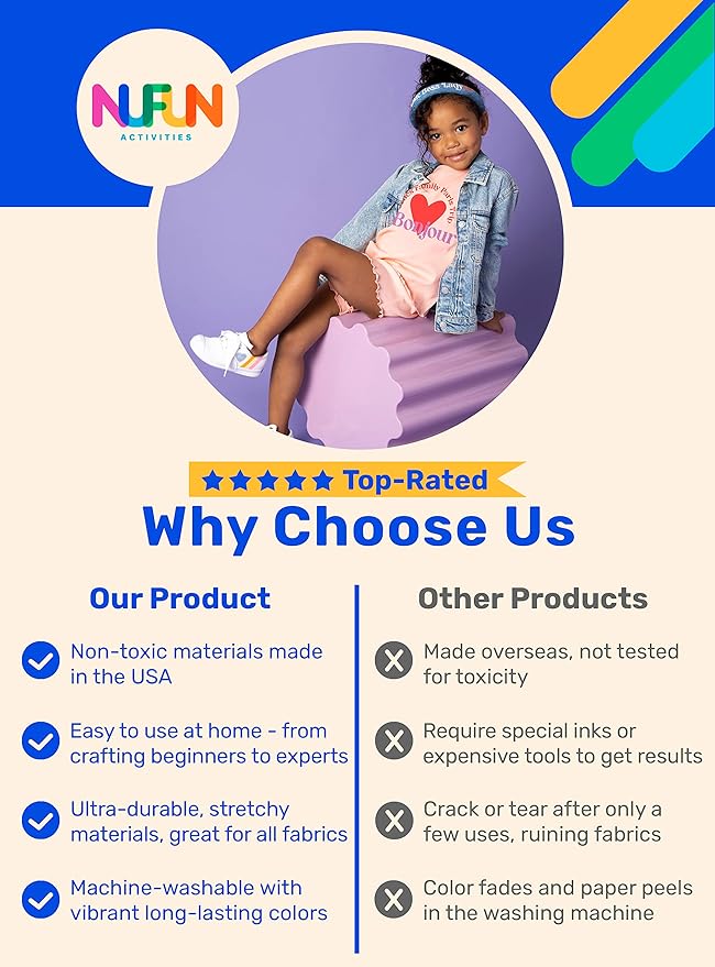 - EASY-TO-USE & VERSATILE: Whether you're an experienced crafter or new to DIY projects, our transfer paper is easy to use and suitable for all skill levels. It's As Easy As Print, Cut, Peel, Iron & Enjoy! Use our transfer paper on a wide range of fabrics, including cotton, polyester, and blends, to create custom designs for T-shirts, sweatshirts, tote bags, shoes, hats, swimsuits, onesies, home decor, and more.