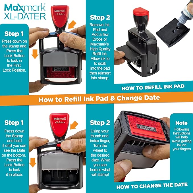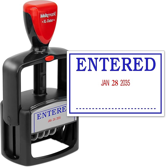 MaxMark Heavy Duty Style 3 Date Stamp with Entered self Inking Stamp - 2 Color Blue/Red Ink