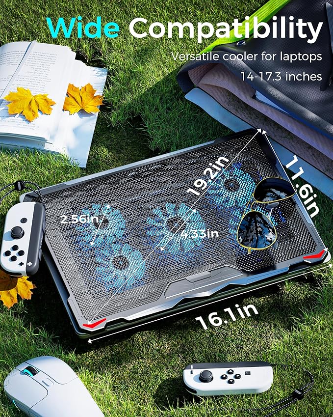 AICHESON Laptop Cooling Pad 5 Fans Up to 17.3 Inch Heavy Notebook Cooler, Blue LED Lights, 2 USB Ports, S035, Blue-5fans