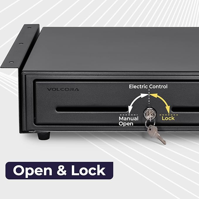 - SECURED CASHIER REGISTER: Our cash box with money tray and lock is secured with 3-position key lock: 1-manual open, 2-auto open by printer/POS, 3-lock. Perfect as cash registers for business, our package includes 4 keys for additional backup. The cash drawer bracket for underdesk mount is also an added security to your hard-earned money