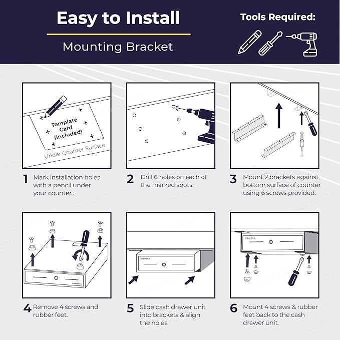 - TOP QUALITY INSTALLATION BRACKETS: Durability is what you expect from under counter drawer brackets, and our superior quality sets us apart. Manufactured with heavy-duty steel, this bracket for cash drawer under mount is sturdy and corrosion-resistant.