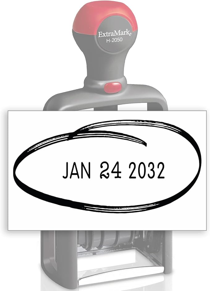 - Light weight unit - Heavy duty circling style Red Color date stamp - Imprint Area: 1-1/8“ X 2”