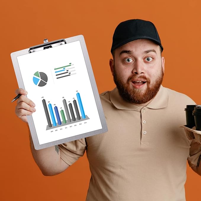 - - Large Capacity Spring Clip: Can hold A4 sized paper and acts as a mini whiteboard(excluding whiteboard pens).