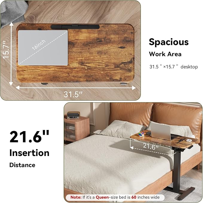 - Multi-Functional Versatility: Serving as an overbed table, rolling desk, or hospital bed table, its spacious 31.5"W x 15.7"D desktop provides a sturdy surface for eating, reading, or working near beds, couches, or recliners