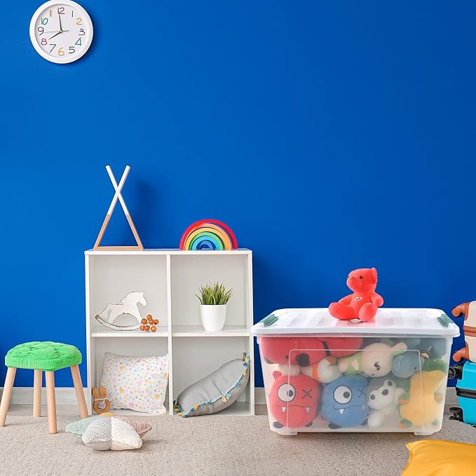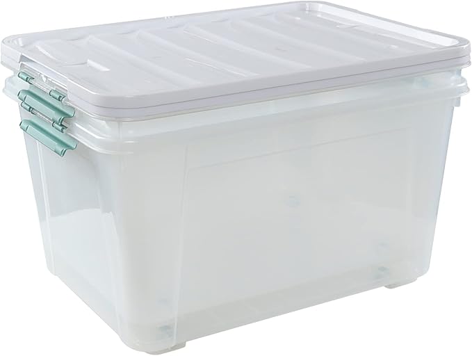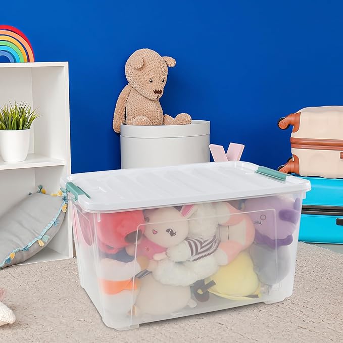 Gloreen 4 Pack Large Plastic Storage Bin with Lid, 85 Quart Latching Storage Box with Wheels