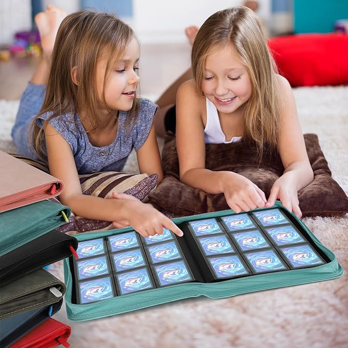 - Thoughtful Details: Different coloured card binders are matched with different coloured zips to meet your personalised needs.Side card pocket to prevent card spillage.Thickened shell design,give your collectible cards stronger protection.