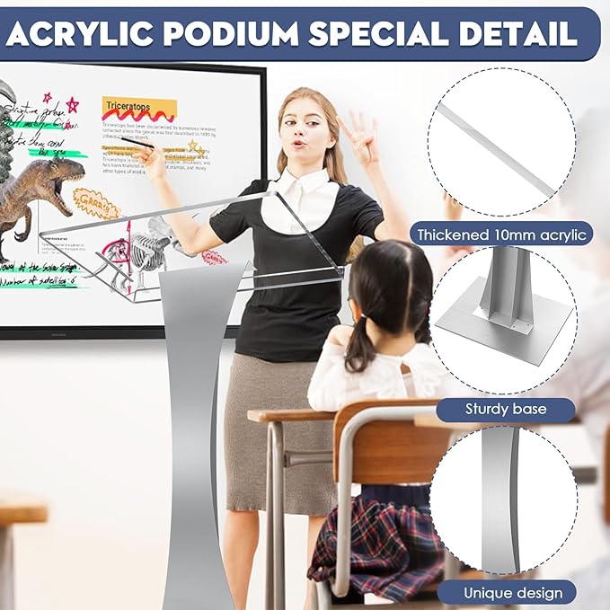 - CRYSTAL CLEAR ACRYLIC - Compared with acrylic lectures on the market, our acrylic podium are made of premium and eco-friendly acrylic material, with a high translucency of 95% by fine polishing, more wear-resistant, drop-resistant, oxidation-proof, and impact-resistant, which brings a more unique visual enjoyment to the speakers and audiences