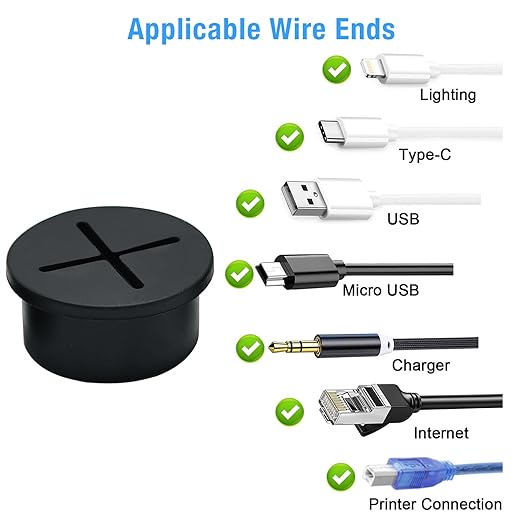 - Easy Installation: Our hole covers for cords are very simple and easy to install, no other tools are required; You just need to put the grommets directly into the holes you drilled and then add or remove cables as needed; The desk cable hole has a flexible opening to accommodate multiple wires from any direction