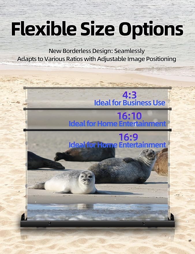 - Portable & Versatile Use:Easily carry and set up this pull-up projector screen anywhere — perfect for home theaters, business presentations, classrooms, and outdoor movie nights. Its compact design makes it a travel-friendly, all-in-one solution.