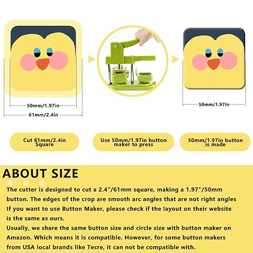 Pin Button Paper Cutter,Manual Square Paper Cutter Tool, Graphic Punch Die Cutter,for Button Maker Machine. (61mm Square Cutter, Cut for 50mm)